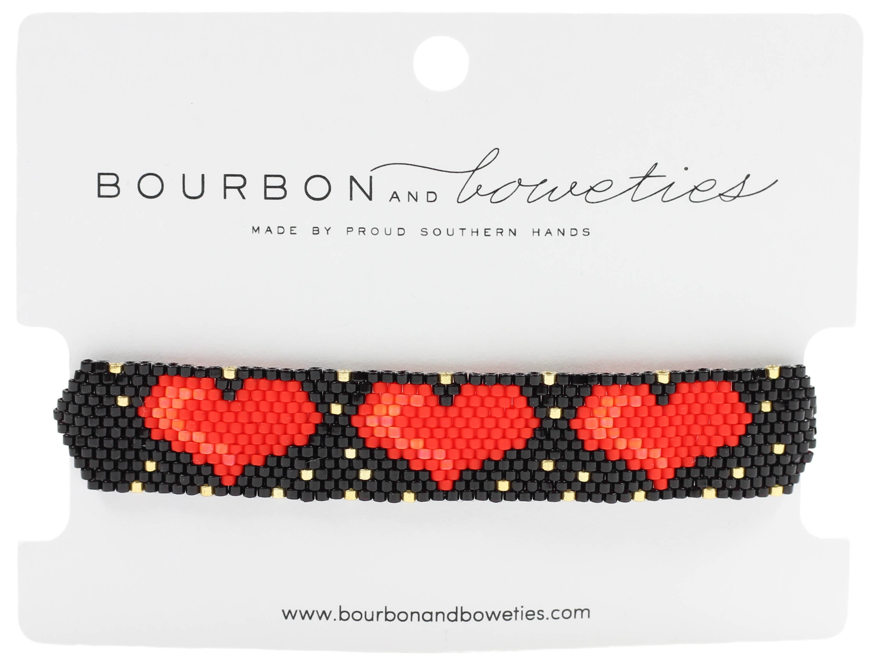 Intricately beaded adjustable bracelet finished with a gold tag.