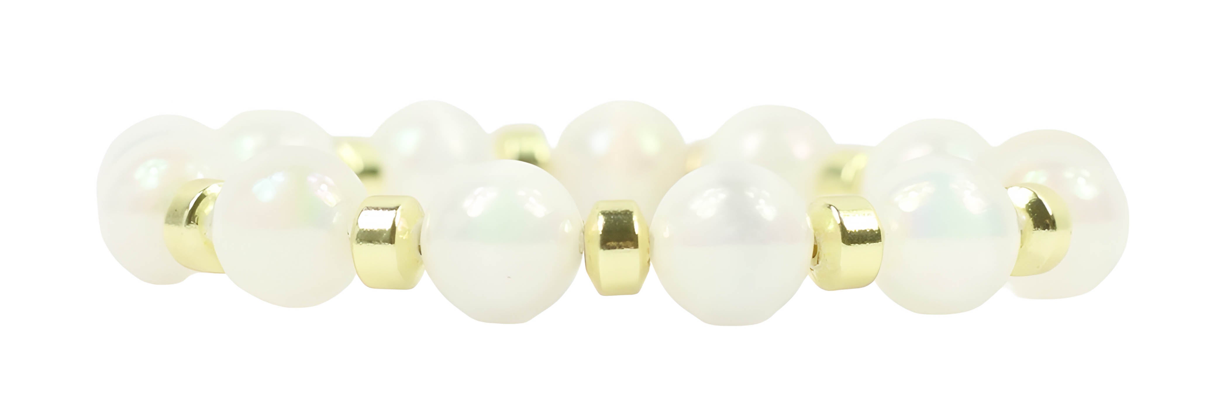 7.25" stretch beaded bracelet finished with a gold tag.