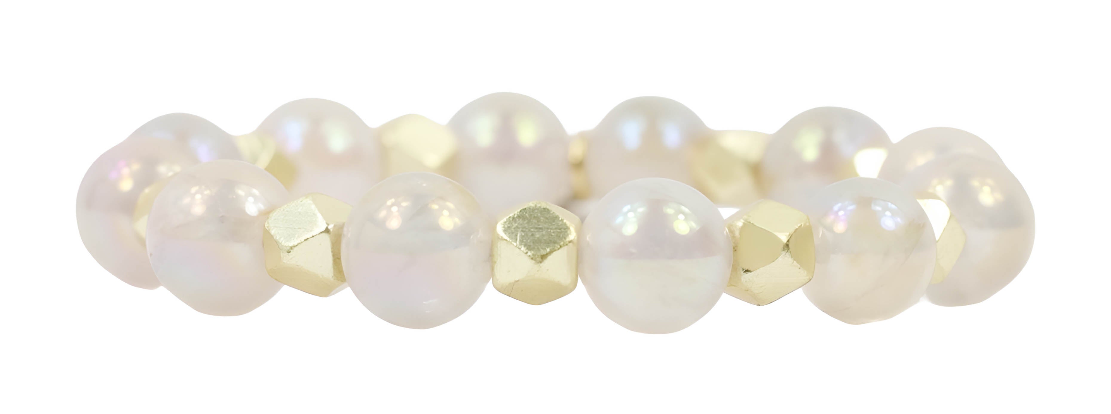 7.25" stretch bracelet finished with a gold tag.