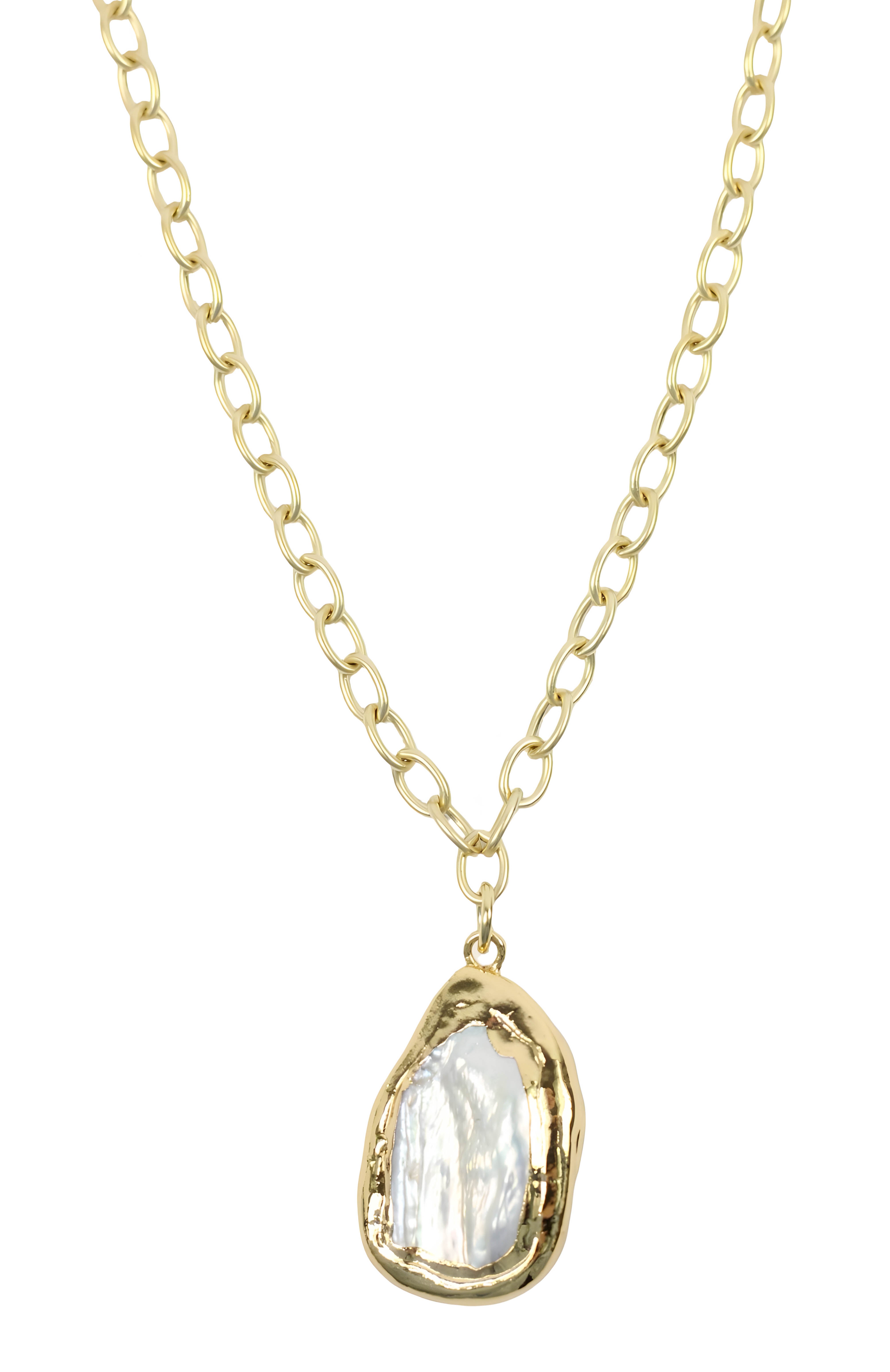 Dainty gold chain necklace accented with a pearl charm. Necklace measures 16" with 2" of extender chain for adjusted length.