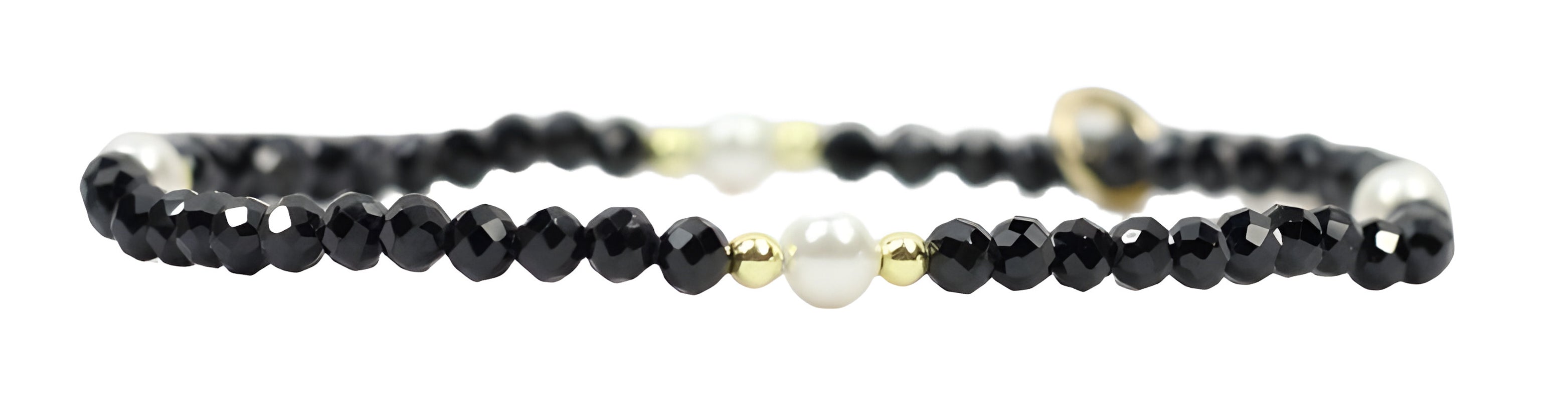 Stacker Stretch Bracelet - Micro Black + Pearl