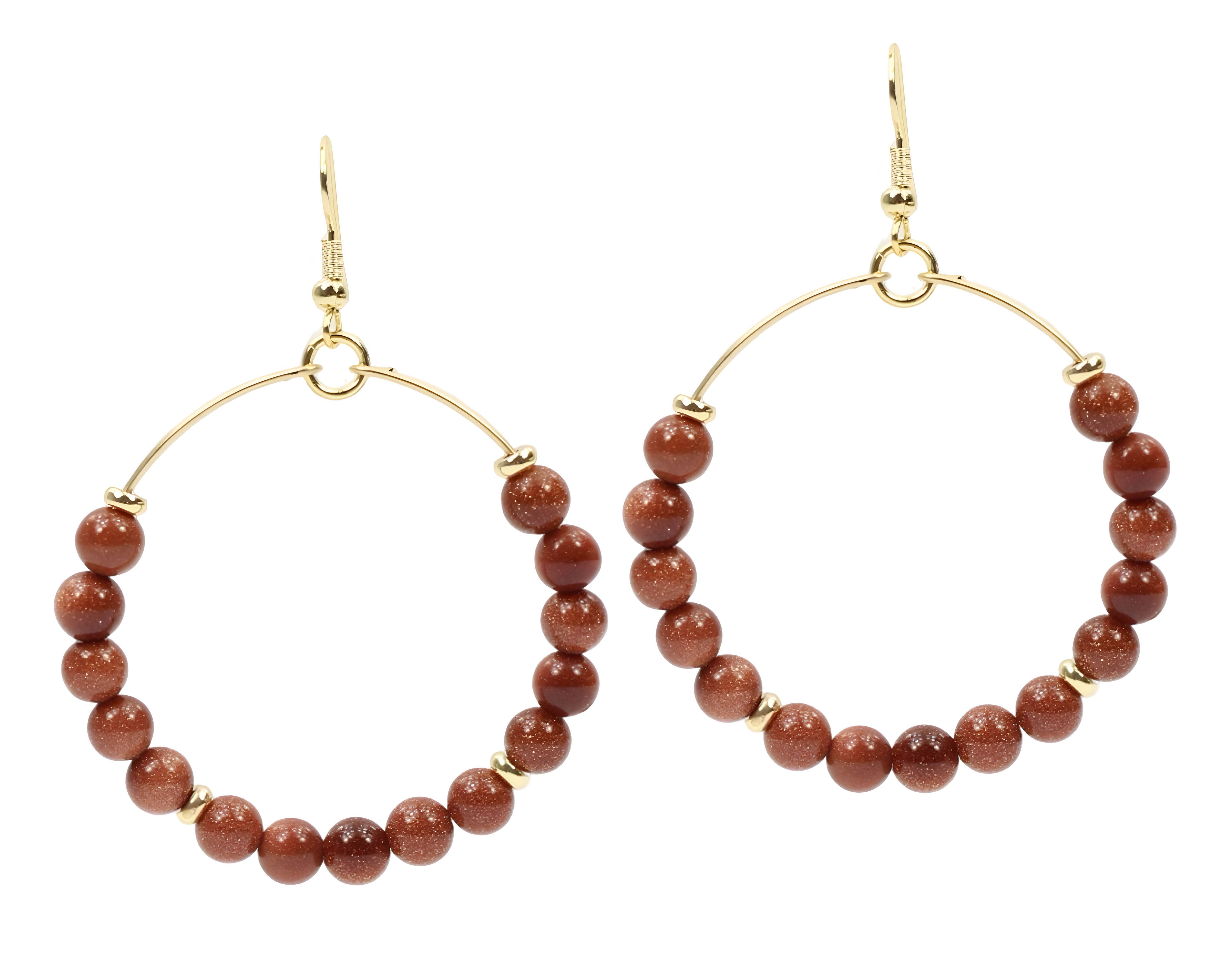 Hoop earring adorned with orange sandstone and gold accents. Hoop measures 1.7" in diameter.